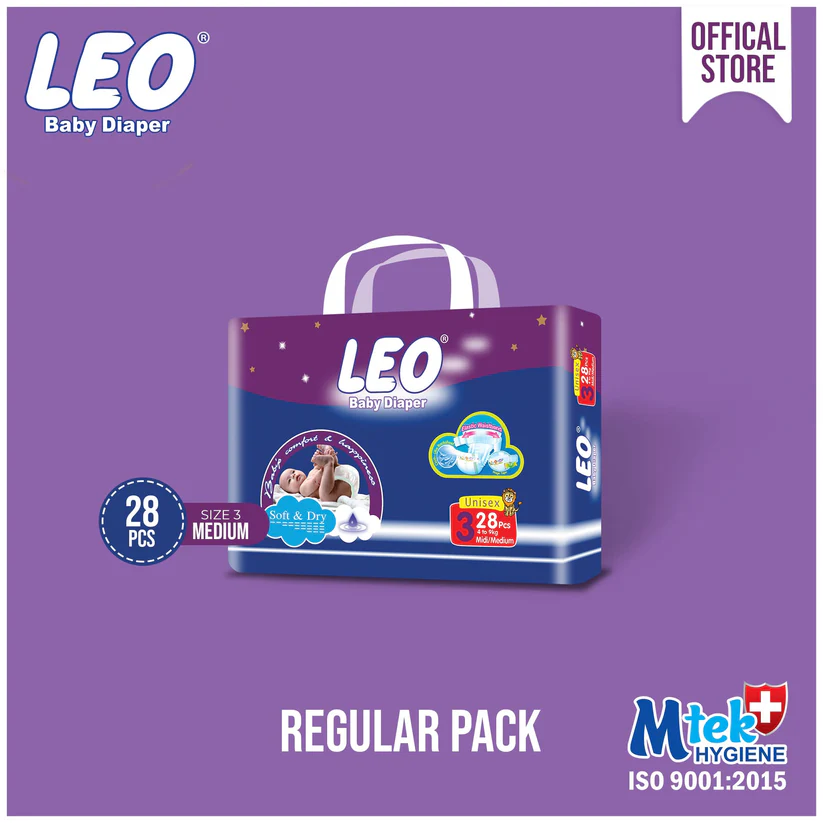 Leo Regular Pack Baby Diaper – Size 3, Medium – 28 Pcs