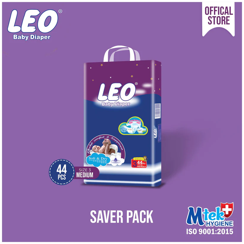 Leo Saver Pack Baby Diaper – Size 3, Medium – 44 Pcs