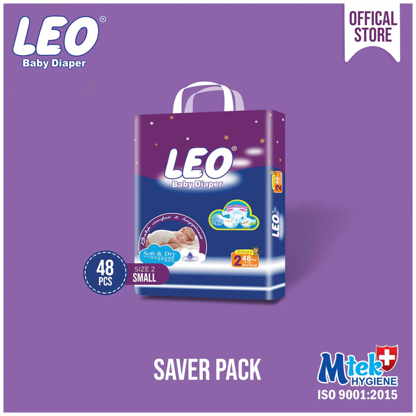 Leo Saver Pack Baby Diaper – Size 2, Small – 48 Pcs