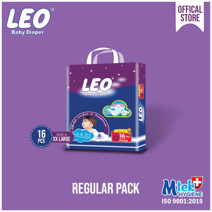 Leo Regular Pack Baby Diaper – Size 6, XX-Large – 16 Pcs