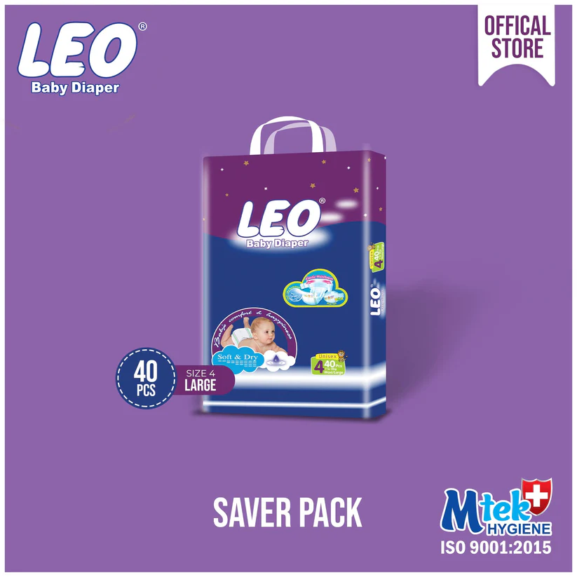 Leo Saver Pack Baby Diaper – Size 4, Large – 40 Pcs